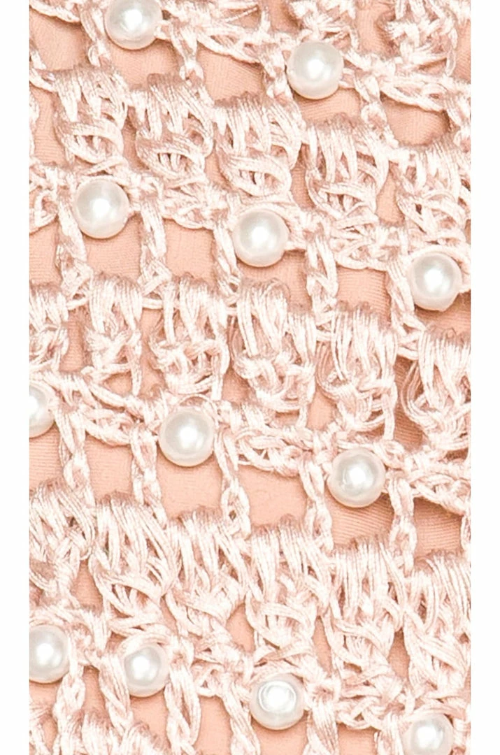 - Acrylic pearl embellishments throughout