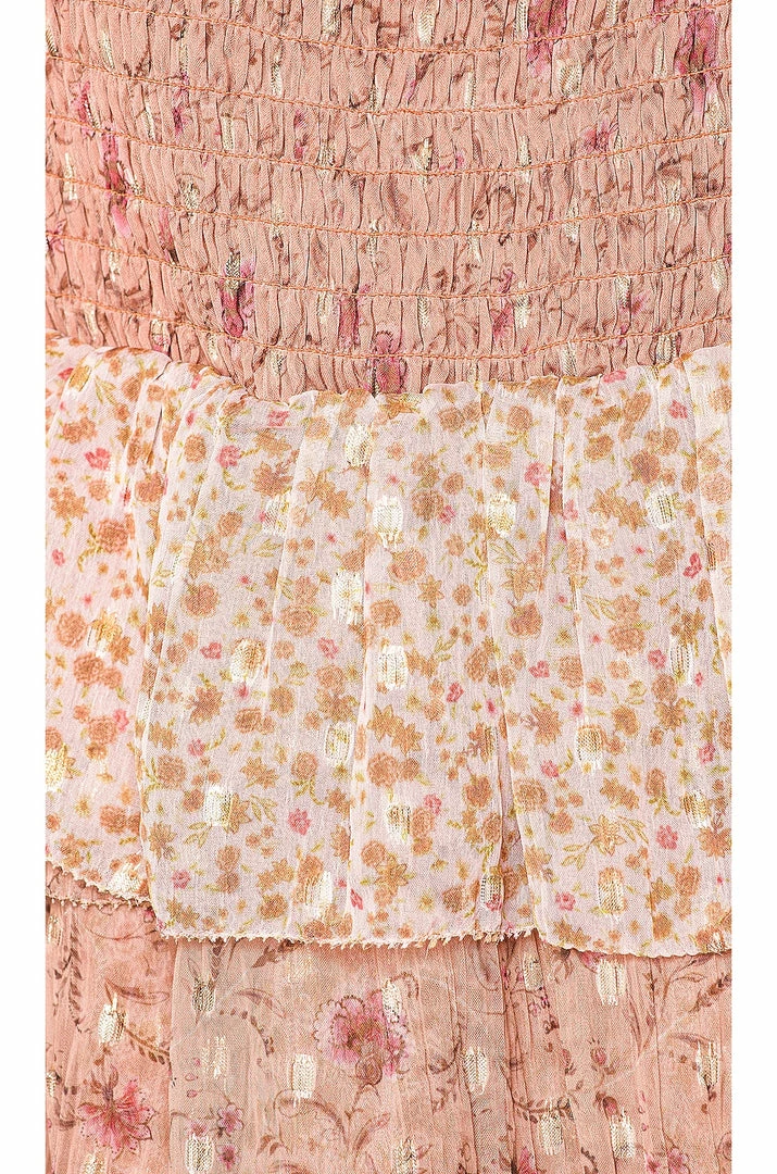 - Lightweight chiffon fabric with tiered ruffle skirt